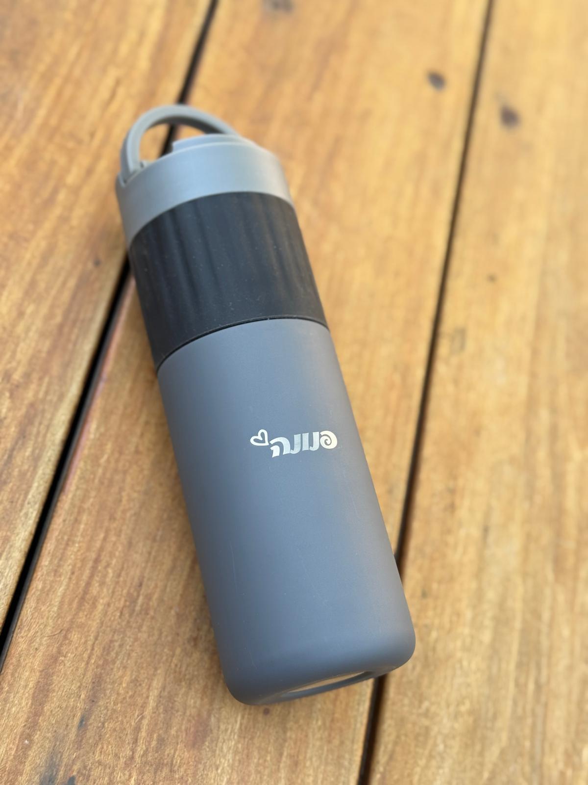 בקבוק תרמי עם סטנד לנייד בקבוק נירוסטה תרמי מעוצב וייחודי השומר חום/קור דופן כפולה לשמירת הטמפרטורה לאורך זמן מכסה פטנט ייחודי עם ידית נשיאה המשמשת כמעמד לסמארפון חריטה אישית חבק סיליקון לאחיזה נוחה תכולה: 500 מ"ל