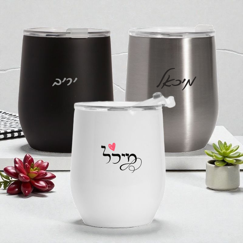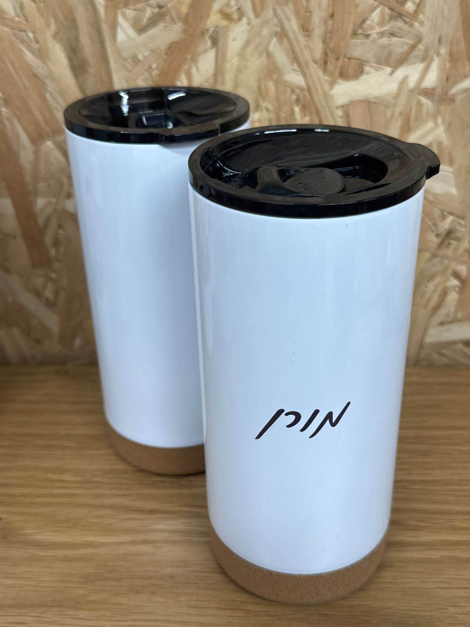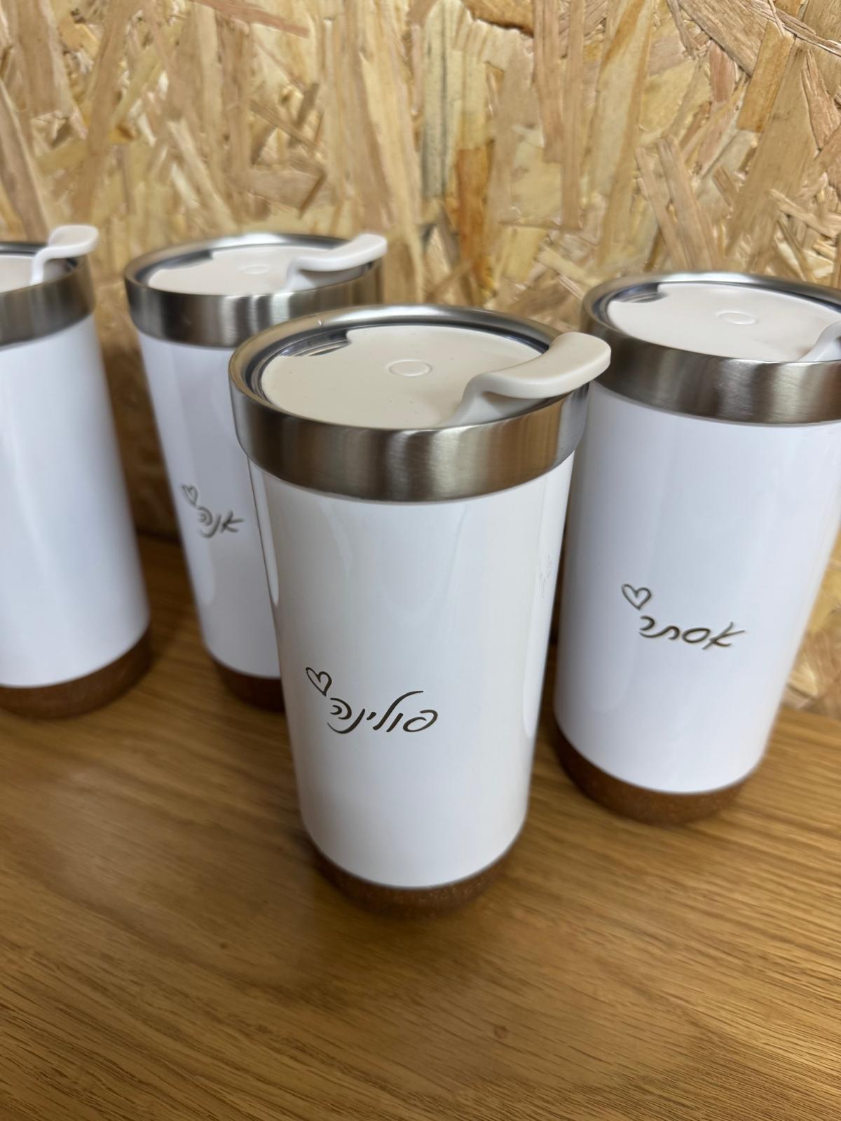 כוס תרמית בעיצוב אורבני איכותית במיוחד עשויה 2 שכבות נירוסטה על הכוסות בצבע לבן ניתן לבחור הדפסה צבעונית כוסות בשחור וכסוף חריטה באישור מכון התקנים 350 מ"ל