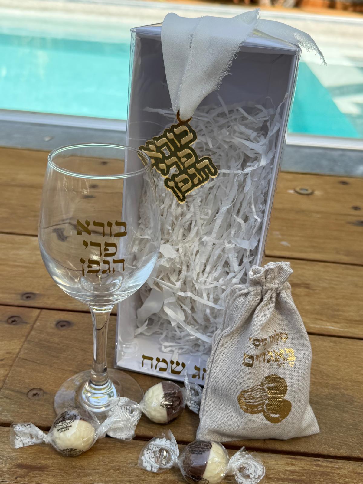 במארז גביע חגיגי ניתן להתאים בהתאם לחג המארז מכיל: גביע זכוכית פרלינים (3 יח') שק עם אגוזים (4 יח') ניתן להוסיף תליון עם הקדשה /גלויה ארוז בקופסה עם מכסה PVC *כל המוצרים כשרים ניתן להחליף לבד"צ