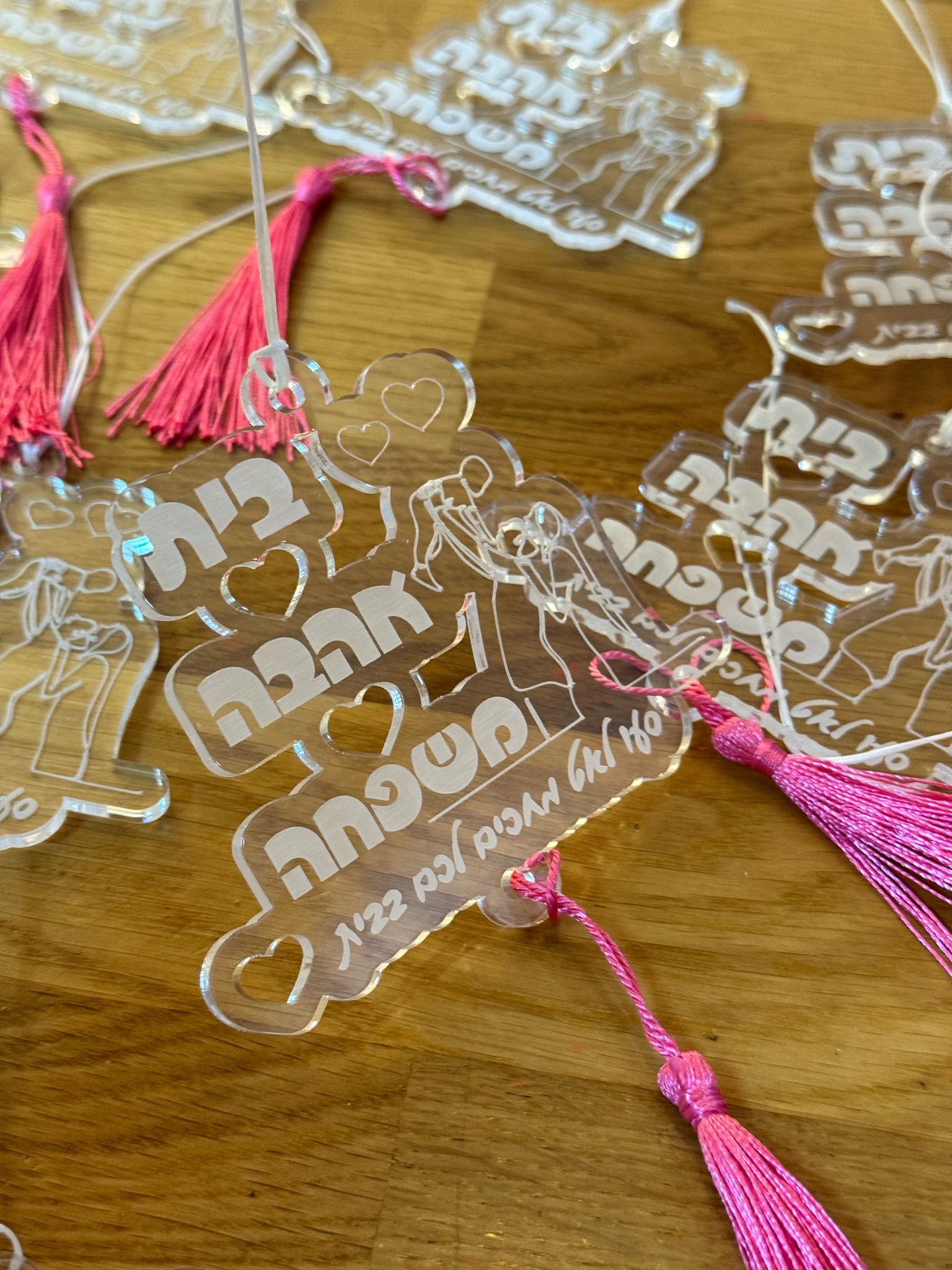 תליון לרכב ליום המשפחה פרספקס שקוף עם פונפון בחיתוך וחריטה בלייזר במגוון עיצובים ניתן להוסיף שם הקדשה בהתאמה אישית