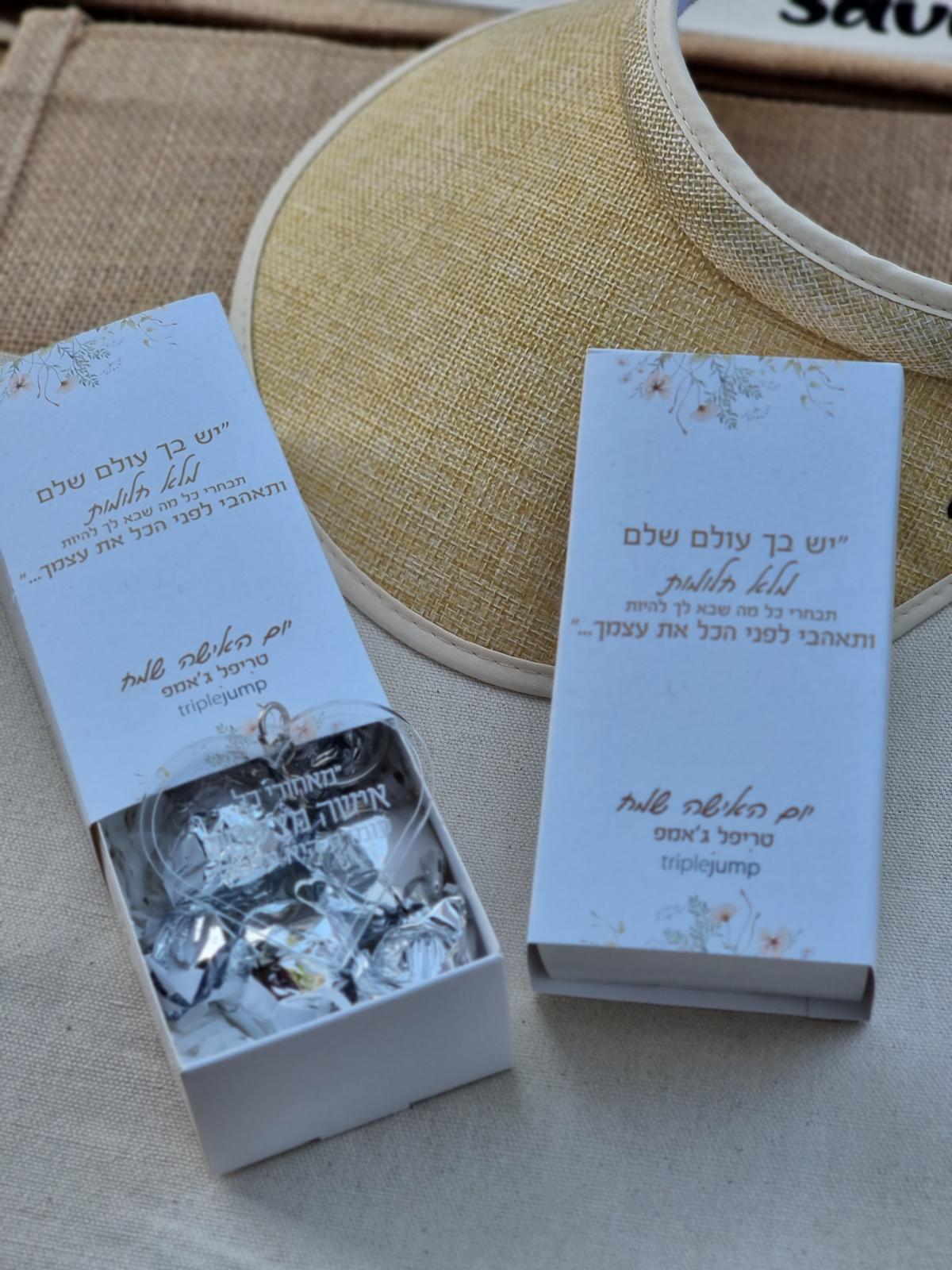 מחזיק מפתחות מראה כיס ופרלינים ממותגים במארז מחזיק מפתחות בחיתוך וחריטה בלייזר בהתאמה אישית ניתן לבחור במגוון צורות והקדשה. מיתוג אחיד ניתן להוסיף שם בתוספת תשלום 2 פרלינים ממותגים כשרות בד"צ פרווה מיתוג מותאם אישית מראת כיס כסופה עם חריטה אחידה ניתן להוסיף שם בתוספת תשלום (המראה ניתנת להחלפה ממגוון המראות הקיימות אצלנו ) גלויה […]