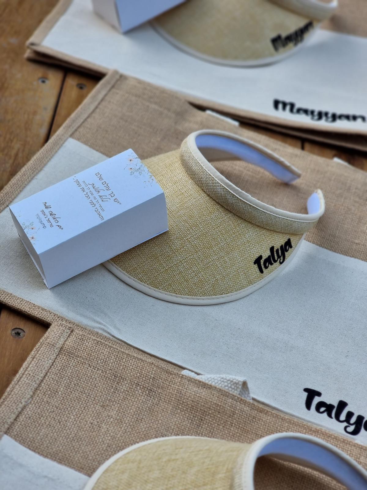 מארז מגירה ממותגת עם מחזיק מפתחות תיק חוף וכובע מצחייה