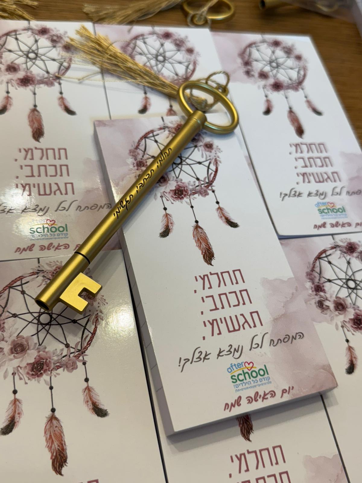 פנקס עם עט בצורת מפתח עם חריטה